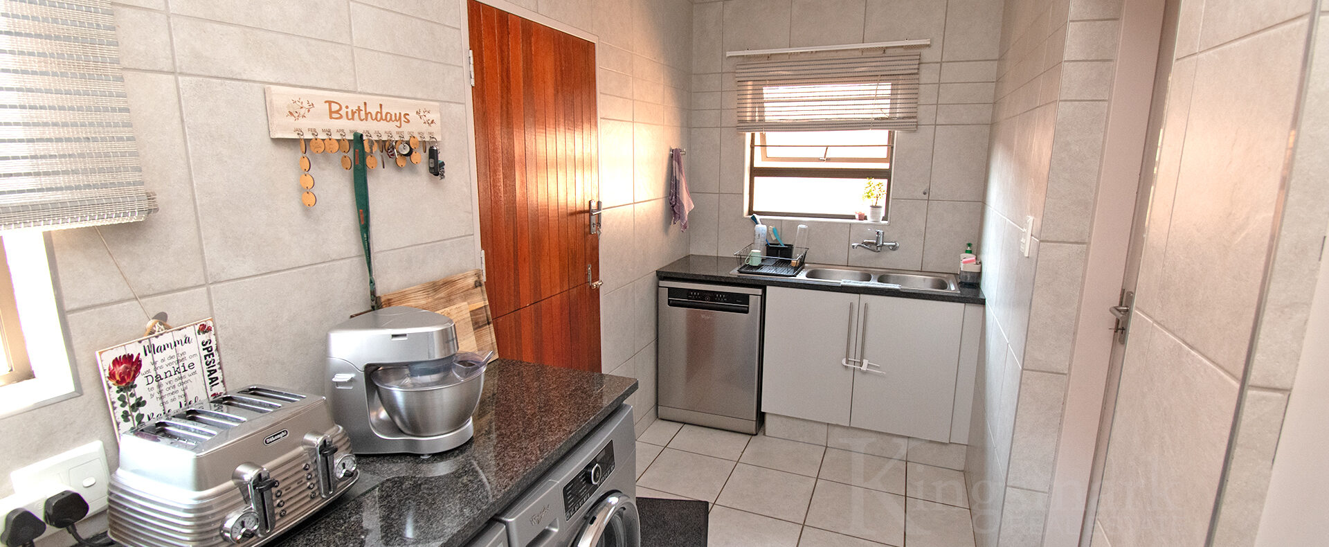 - Space for 3 under-counter appliances & double-door fridge
