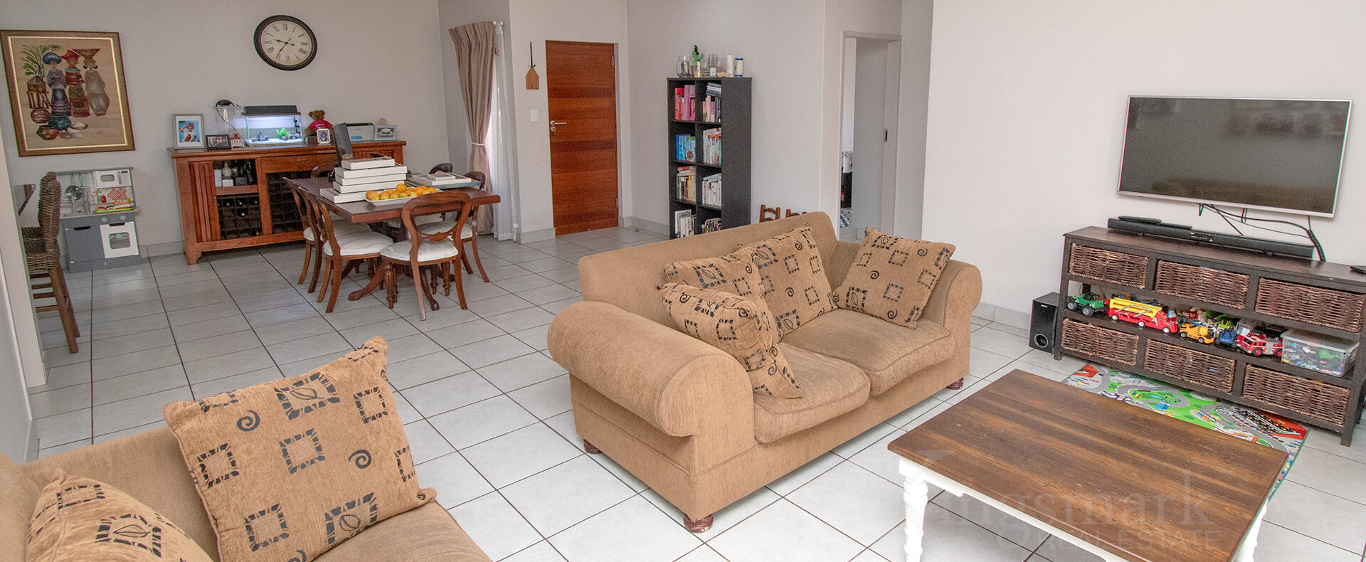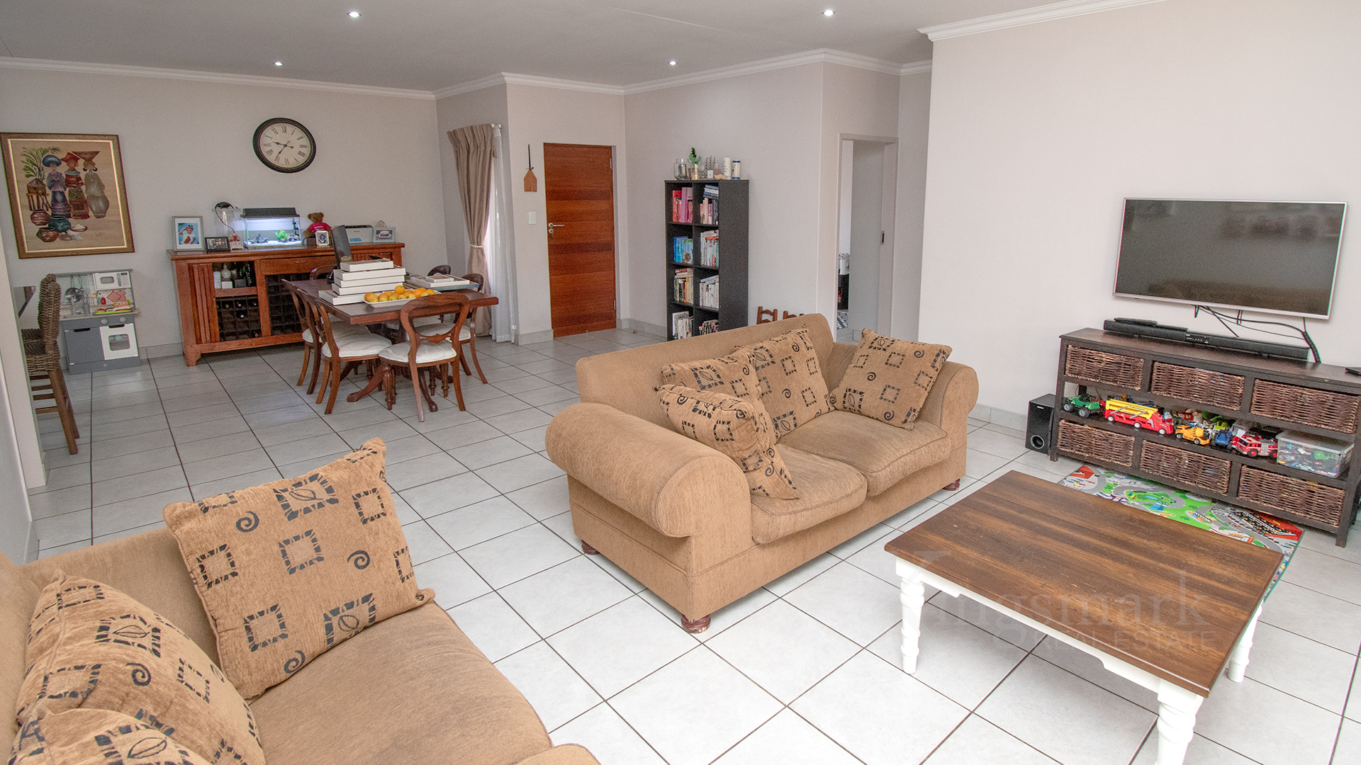 A large open-plan living area comfortably accommodates both a dining room and TV lounge, creating an inviting space for everyday living and entertaining.