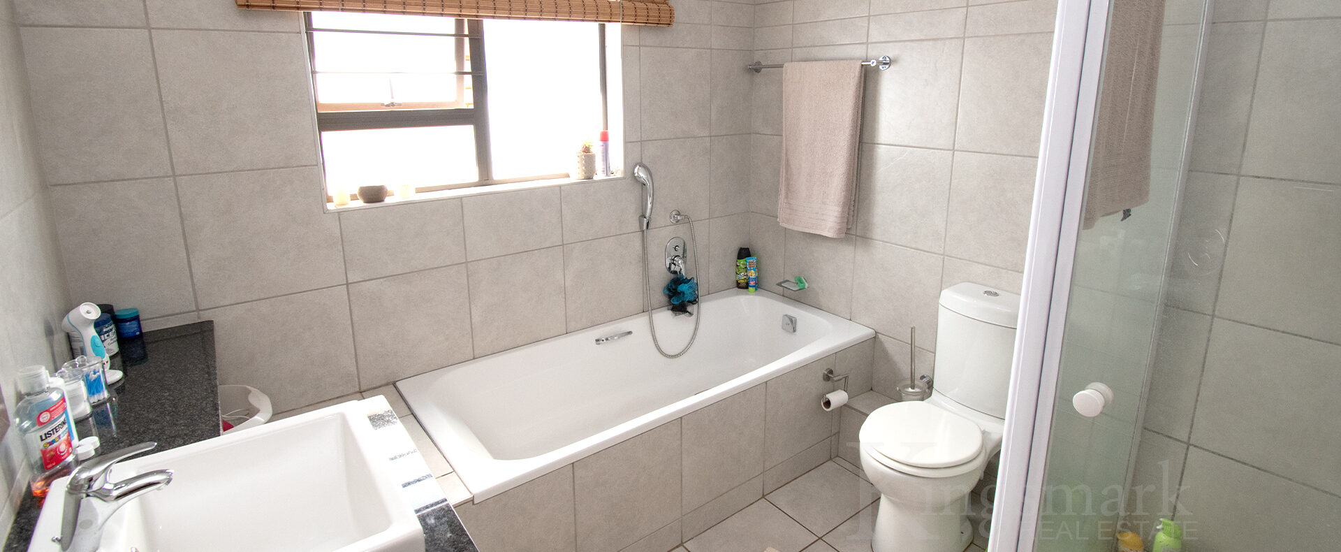 The property features three well-sized bedrooms with built-in cupboards and two bathrooms, including a main en-suite bathroom that has a bath as well as a shower.